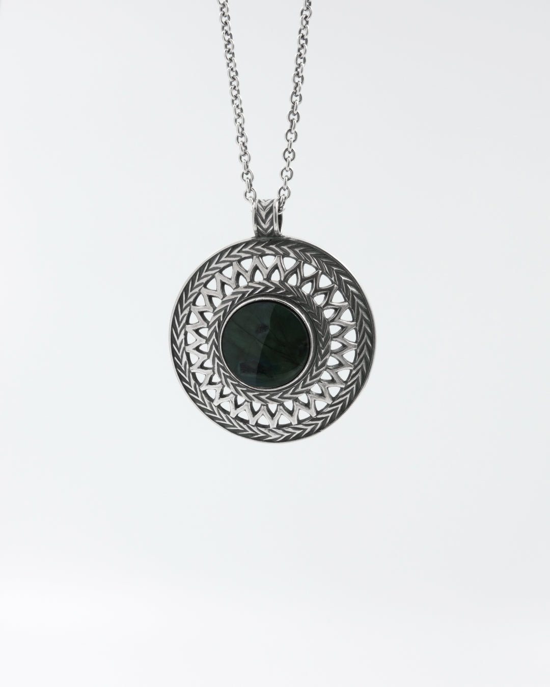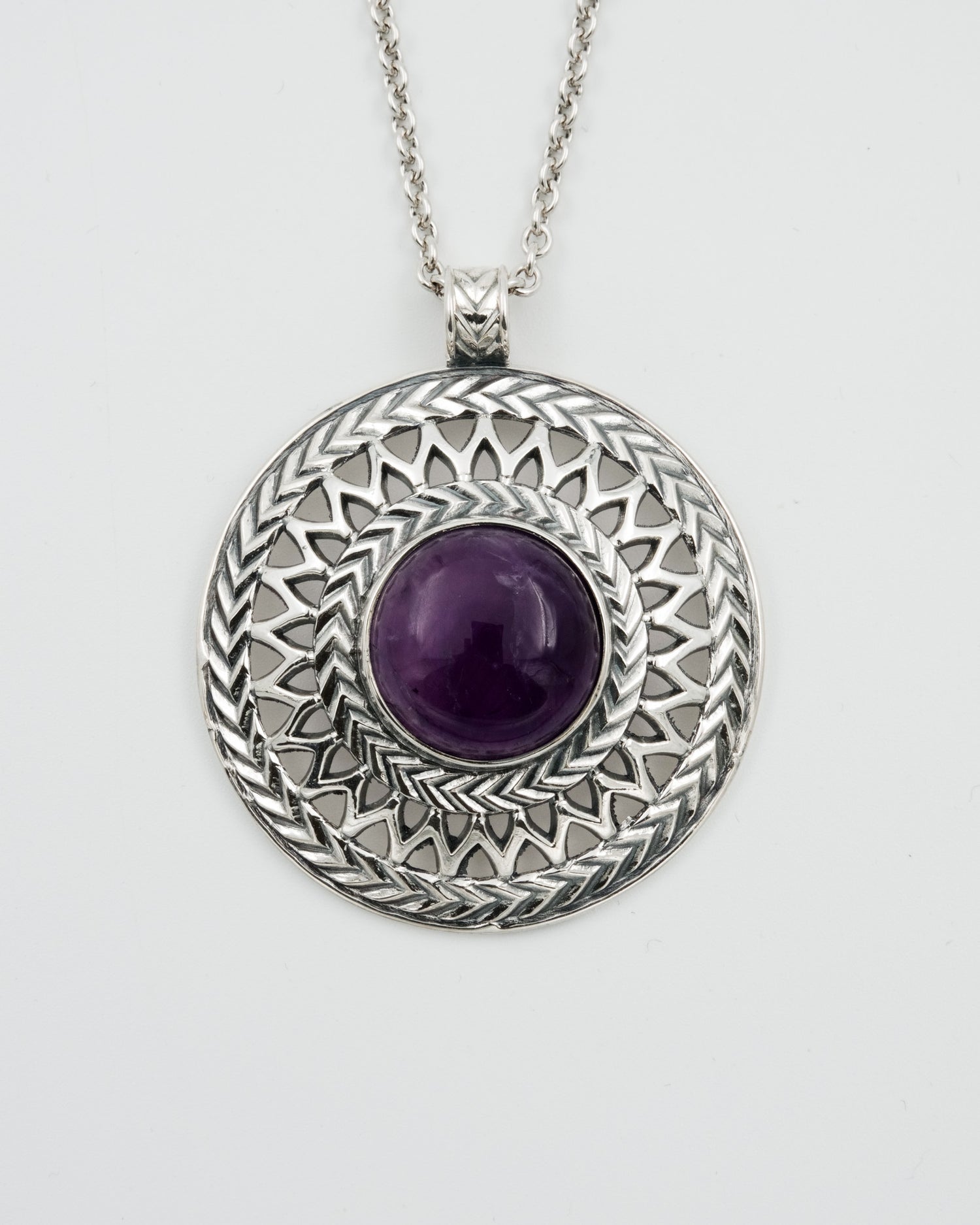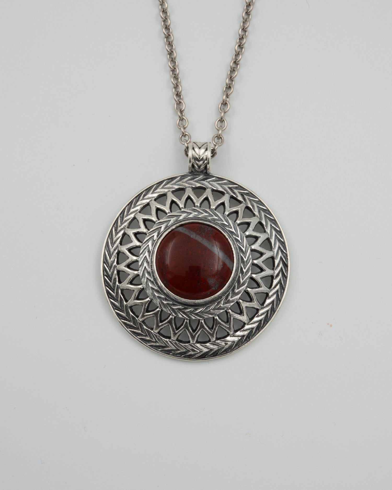 Pidetty Sancta Birgitta -solkiriipus 60 cm hopea granaatti