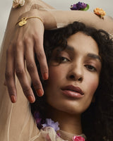 Ranneketjun ovaalissa elementissä on saranallinen läppä, jonka kautta voit pujottaa siihen Amuletti-pikkuheloja – yhden, kaksi tai vaikka koko sarjan! Säädettävä pituus 15,5 / 17,5 / 19,5 cm. Papukaijalukko. Kullattua pronssia, saatavissa myös hopeisena.
