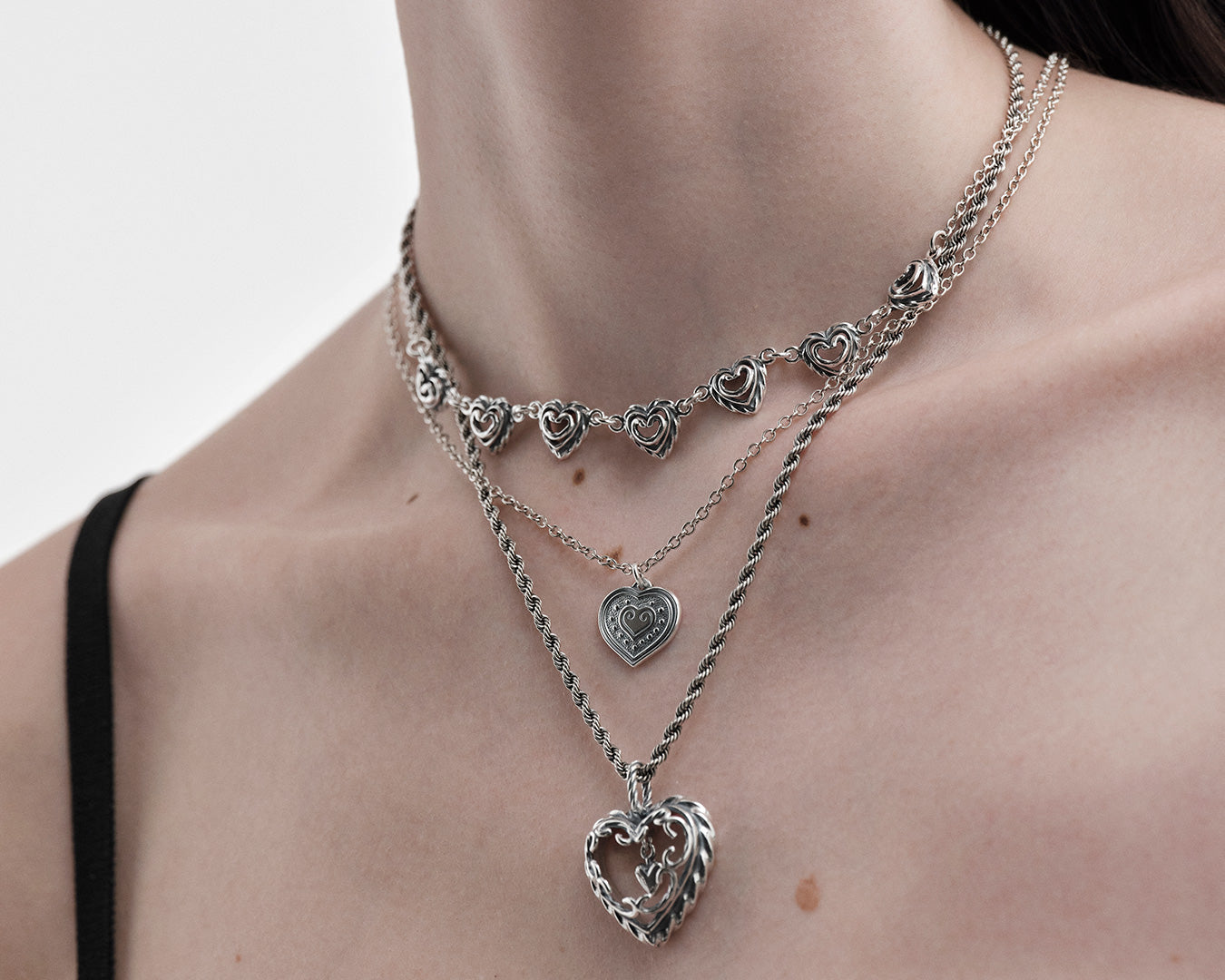 Pidetty Pustan sydän -riipus 45 cm hopea