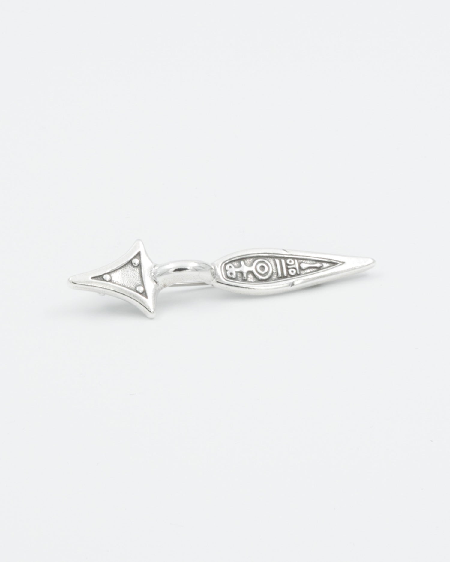 Pidetty Kalevankarhu-solkiriipus 45 cm hopea