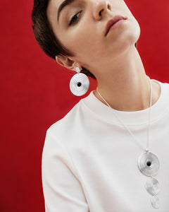 Kosmoksen kirkas pronssi hehkuu lämpimissä sävyissä. Kullanhohtoisen pronssin ja lämminhehkuisen Itämeren meripihkan yhdistelmä luo näyttävään Kosmos-riipukseen jännitettä ja dramatiikkaa. Papuketjussa säädettävä pituus 45/42 cm. Papukaijalukko. Saatavissa myös hopeisena.