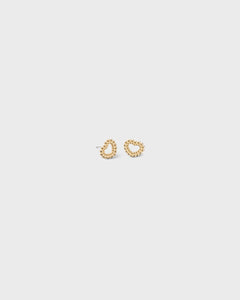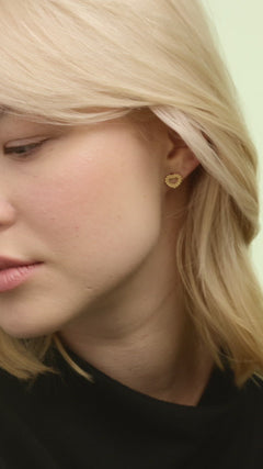 Kullanhohtoisesta kirkkaasta pronssista tehdyt pienet sydämet säteilevät iloa ja valoa ympärilleen. Tappikiinnitys, tapit ja taustanastat hopeaa. Korvakorut saatavissa myös hopeisina.