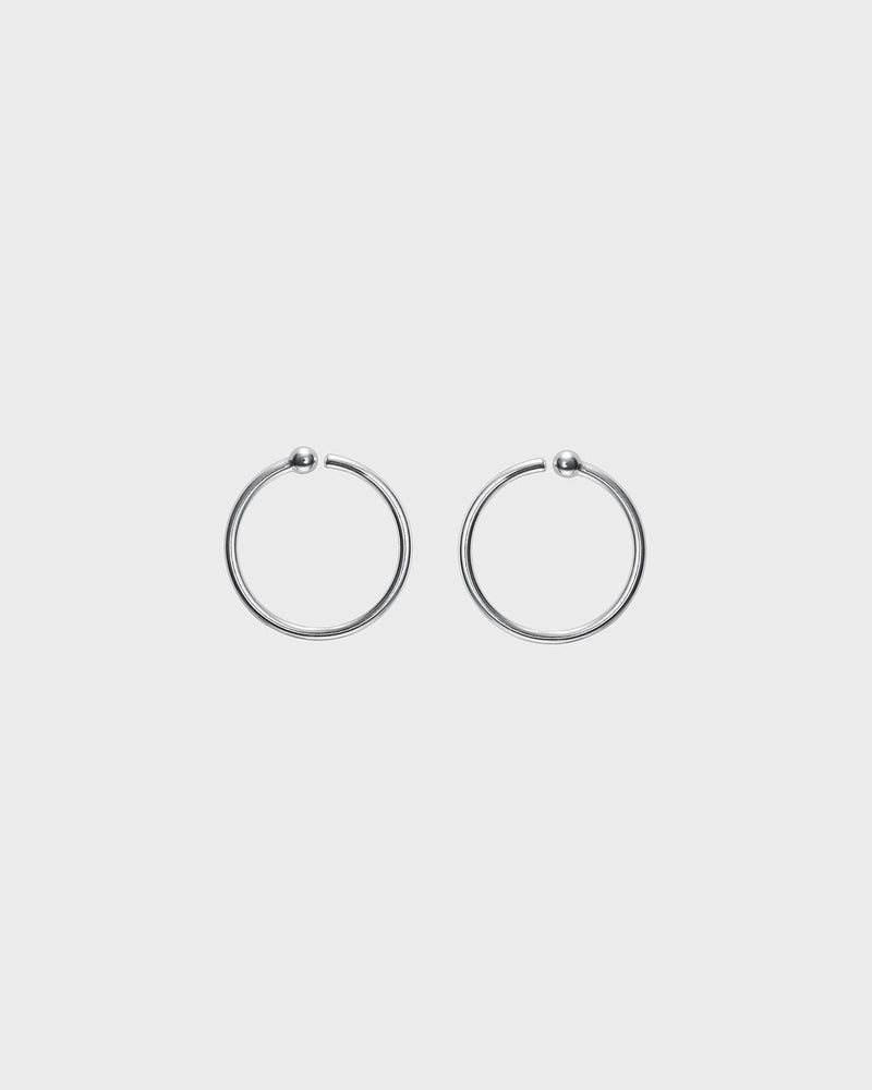 Pelkistetyn puhdaslinjaiseen korvarenkaaseen voit pujottaa Amuletti-pikkuheloja – yhden, kaksi tai vaikka koko sarjan! Taivuta rengasta auki sen verran, että saat helan solahtamaan renkaaseen kiinnitystappipään ja pallopään välisestä aukosta. Älä kuitenkaan taivuta liikaa, ettei onttoon renkaaseen tule lommoa. Tappikiinnitys. Hopeaa, saatavissa myös pronssisena.