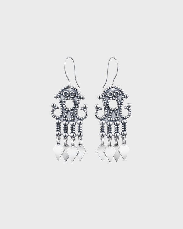 Kauppaa on käyty aina ja kaikkialla. Jo vuosituhansia sitten kulttuurikeskuksissa syntyneet uudet ilmiöt, tyylit ja tavarat levisivät kauppiaiden matkassa kauas syntysijoiltaan. Euroopan pohjoisimmilla alueilla kolttanaiset ovat olleet korvakorujen käytön uranuurtajia. Viime vuosisadoilla he käyttivät värikkäillä lasi- ja hopeahelmillä koristeltuja korvakoruja, joita he saivat idästä tulleilta kauppamiehiltä. Tämän korun esikuva on Petsamon Suonikylästä. Korujen muoto ja rakenne juontavat juurensa Bysanttiin ajanlaskumme ensimmäisille vuosisadoille.