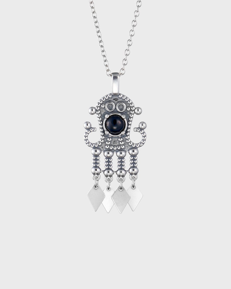 Mystinen hopeariipus on Kalevala Originals -ystävien lisäksi kaikille, jotka arvostavat perinteitä ja hienoja yksityiskohtia koruissa. Riipukseen on istutettu kauniisti kiiltävä musta onyksi-kivi. Säädettävä pituus 80/70 cm.