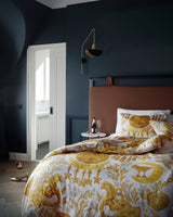 Vallila x Kalevala yhteistyömalliston Kuulintu-kuoseja koristavat Kalevalan rakastetut korut kuten Kuutar, Hattulan lintu, Aurinkoleijona ja Euran sydän.