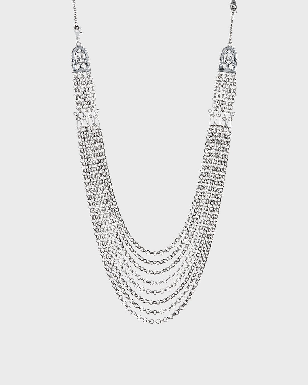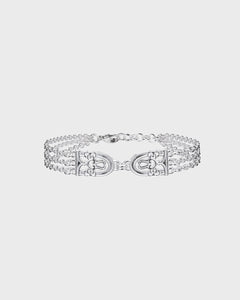 Vanhan klassikon uusi tulkinta. Välkehtivästä hopeasta tehdyn siron rannekorun holvikaaren muotoiset koristelaatat on kuvioitu molemmin puolin. Säädettävä pituus 16,5 – 19,5 cm. Papukaijalukko. Saatavissa myös pronssisena.