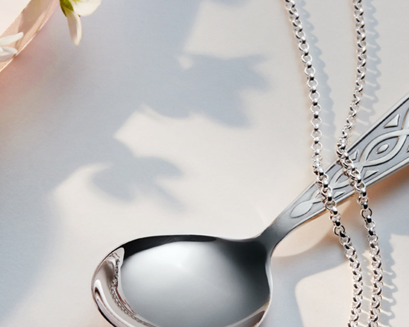 Designed by Tony Grandholm, the christening spoon features playful bears peeking at each other. The christening spoon is a traditional and appreciated gift for christenings and naming ceremonies. Engrave the child’s name, date and time of birth, weight and height on the smooth reverse of the silver spoo