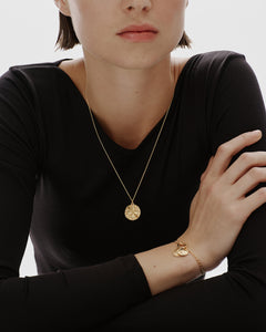Made from warmly glowing bronze, the Four-leaf Clover pendant is an excellent choice as a confirmation or Prometheus gift—or simply as a delightful token for anyone setting out on life’s paths. The diameter of the round Four-leaf Clover Amulet pendant is 20 mm. The reverse side is hollow (with the design in negative) and the piece is therefore not suitable for engraving. The thin anchor chain has an adjustable length of 40/45/50 cm. The pendant is delivered with a separate extension piece you can use to make the chain even longer, 55 or 60 cm. Spring ring clasp on both the chain and the extension. Also available in silver.