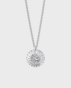 The large Sun Lion pendant made of bright silver has a diameter of 25 mm. The pendant is hollow on the reverse side (the pattern is repeated in negative), so it cannot be engraved. Anchor chain, adjustable length 55/60, lobster clasp. Also available in bronze.