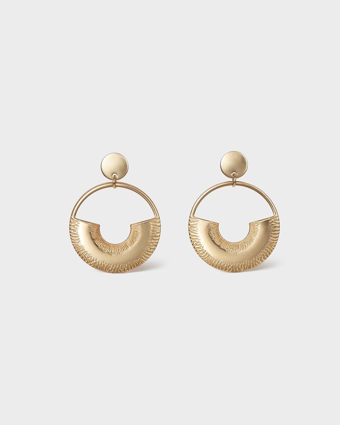 Earrings made of golden shimmering clear bronze with pin fastening. Showy but delightfully light earrings for every situation. Kaaria earrings are now also available in silver.