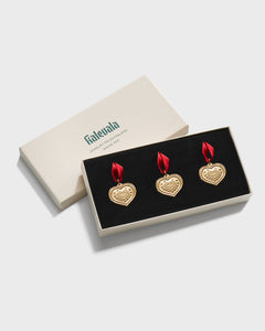 The beloved Eura Heart is now available as a set of three ornaments that bring beauty and joy to your home all year round. One of Kalevala’s most popular designs of all time, the Eura Heart has been part of our collection since the 1950s. Its Viking Age original was discovered in Pappilanmäki, Eura. The ornaments are made of partially recycled bronze that glows like gold. The red ribbons are made of recycled PET bottles.