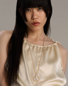 The popular Circle of Light pendant now available in bright bronze glowing like gold. Adjustable length 70/80 cm. Attached to the end of the chain is a little round charm with Kalevala’s hallmark. Spring ring clasp.
