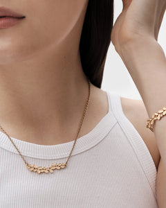 Making dreams come true. In the pendant of the bronze Daydream necklace, small matte-surfaced buds form a delicate, lace-like pattern. Spring ring clasp. Adjustable in length 42/45 cm. Also available in silver.