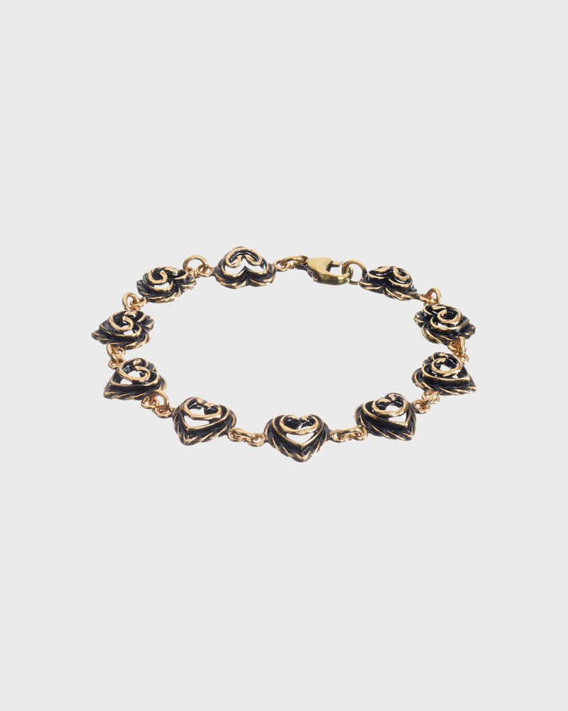 Adorable little hearts and the warm glow of bronze around your wrist. This bracelet is available in two lengths. The bracelet may also be shortened by detaching heart pieces. Also available in silver and gold.