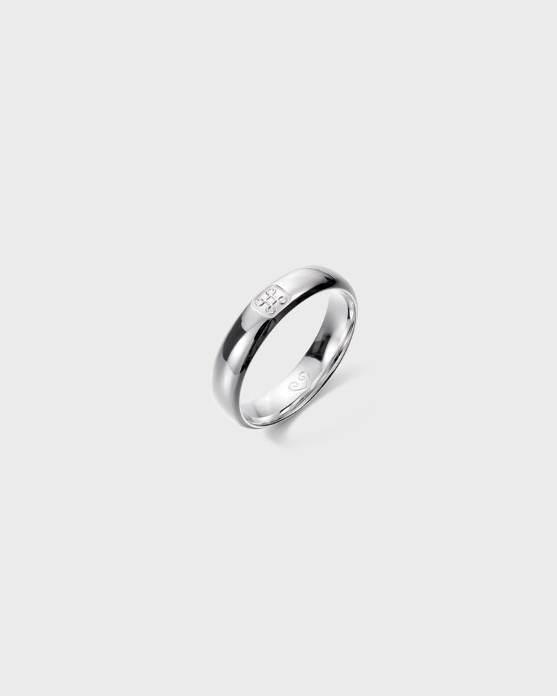 A single unending string forms a looped square cross. In the ancient Northern Europe, it was believed that this symbol contained a protective power that shielded its wearer from evil. The design also reminds us of the Earth’s four protective spirits, each of whom settled down in their corner and supported the sky above the Earth. The Northern people named those spirits West, East, North and South. Fortune follows the wearer of the Vaakuna ring, and no evil thoughts may reach them – the looped square cross on top of the ring, the St. John’s arms, is a sign of this protection. Of even width and thickness, the Heraldic ring is easy to combine with other Kalevala Love rings. The symbol of the Kalevala Love collection, a heart based on a Viking Age motif, is engraved on the inside of the shank. White gold, also available in yellow gold.