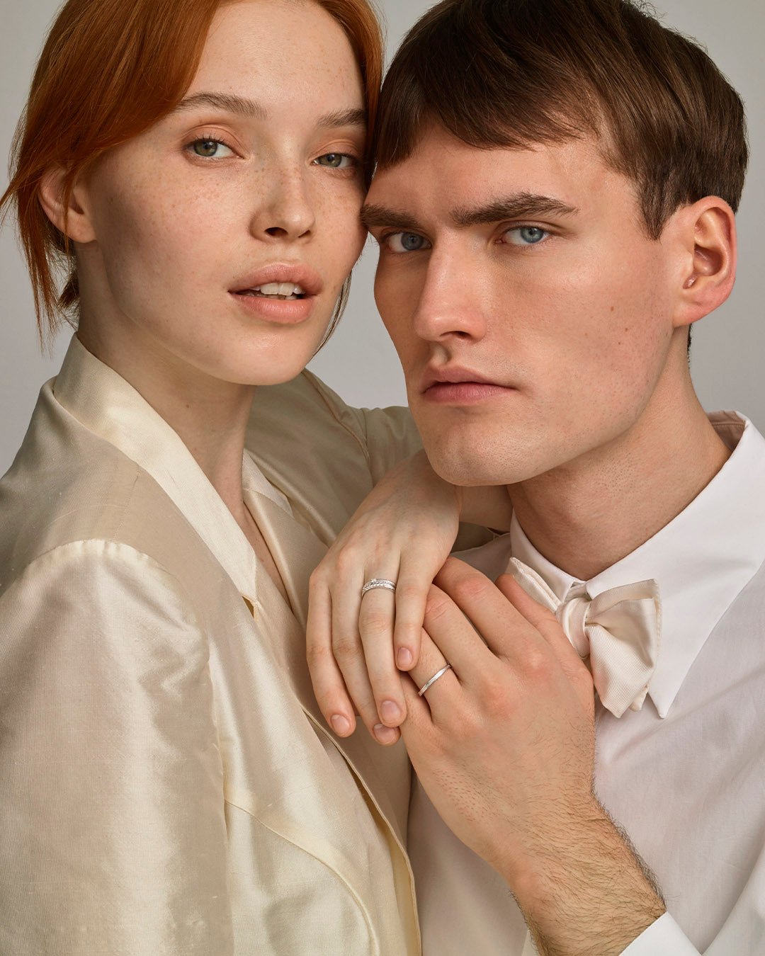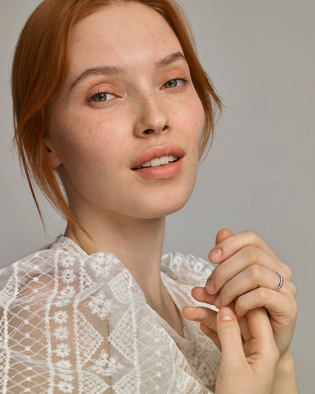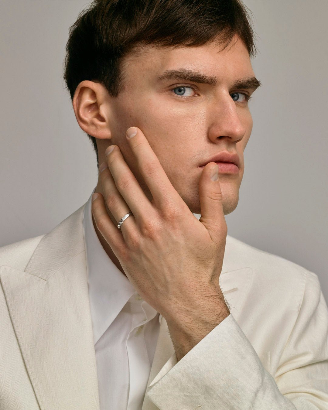 This ring is adorned with a sophisticated cord pattern that originates in a 4th century ring found in Uskela, Southwest Finland. Golden items are rare amongst prehistoric findings in Finland but not entirely unusual. The oldest golden items found their way to the area of present-day Finland in the early centuries of the C.E. also known as the Roman Iron Age. This ancient ring has retained its golden gleam for nearly two millennia. It was made to be everlasting. The Heritage ring is adorned with seven beautifully cut 0,02 ct diamonds set in a row, sparkling like shards of stars fallen from the night sky. Of even width, the Heritage ring is easy to combine with other Kalevala Love rings. The symbol of the Kalevala Love collection, a heart based on a Viking Age motif, is engraved on the inside of the shank. Yellow gold, also available in white gold.
