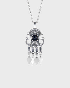 This mystical silver pendant is for all fans of Kalevala Originals and for everyone wanting to spice up their attire with a trendy detail. The pendant is adorned with a shiny black onyx. Adjustable length 80/70 cm.