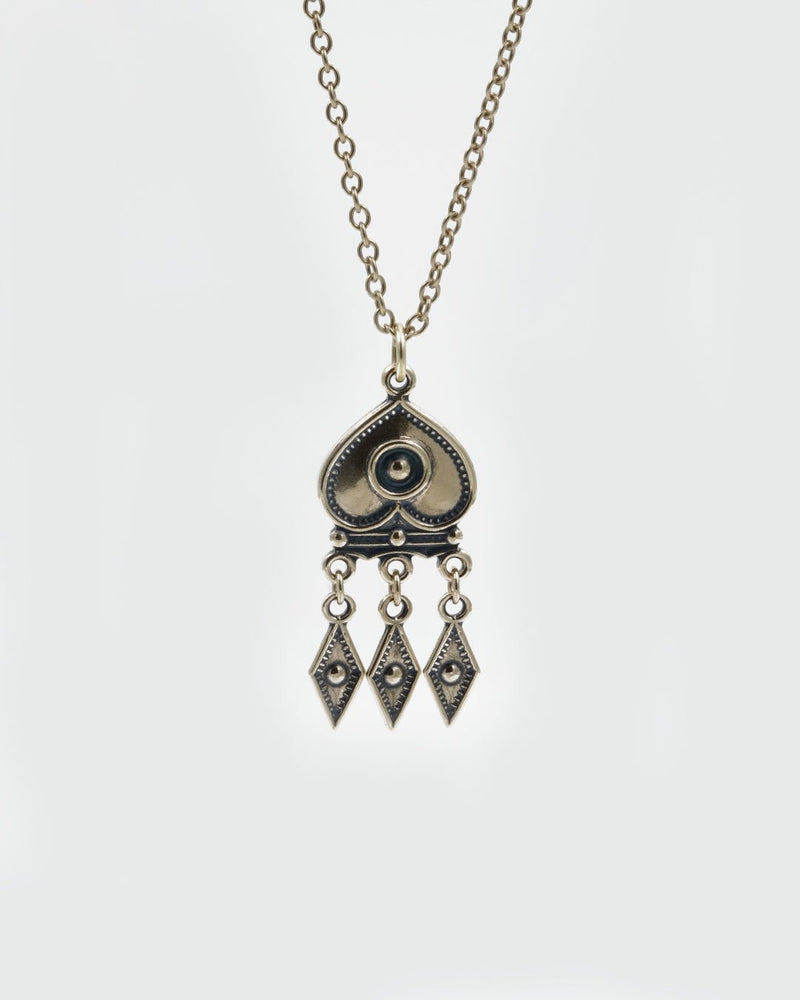 The Viking inspired Leaf of Hearts was designed in the 1940s by Mr Germund Paaer, the first Head of Design at Kalevala Jewelry. In the 1990s, a smaller version of the design was made, which now returns to the collection in a limited edition after a 20-year hiatus. Anchor chain, adjustable length 42/45/50 cm, spring ring clasp. The reverse side of the pendant is unpatterned.