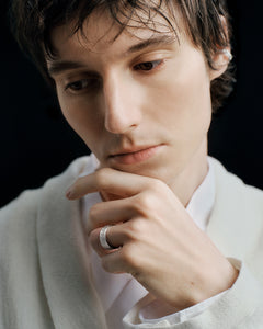 An eternal oath, a promise of tomorrow. An old legend tells of a Viking chieftain who was caught in a violent storm while sailing on a great lake, far from the shore. The chieftain begged the forger of the vault of heaven to save his men from shipwreck. The chieftain and his men were saved and once he was back on the shore, he sacrificed a golden bracelet to the gods above as a token of his gratitude. The sacrificial gift slumbered beneath the beach sand for the next thousand years. The golden bracelet was discovered in Metsäpirtti, Karelia, in the 1920s, and in 1956 jewelry designer Börje Rajalin used the bracelet as a model for a new ring in the Kalevala Koru collection. This wide, impressive ring formerly known as Metsäpirtti ring suits both men and women. The symbol of the Kalevala Love collection, a heart based on a Viking Age motif, is engraved on the inside of the shank. White gold, also available in yellow gold.
