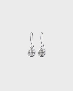 A cross with a modern twist. The plain backsides of the silver earrings can be engraved as memento of confirmation or other important moments in life.