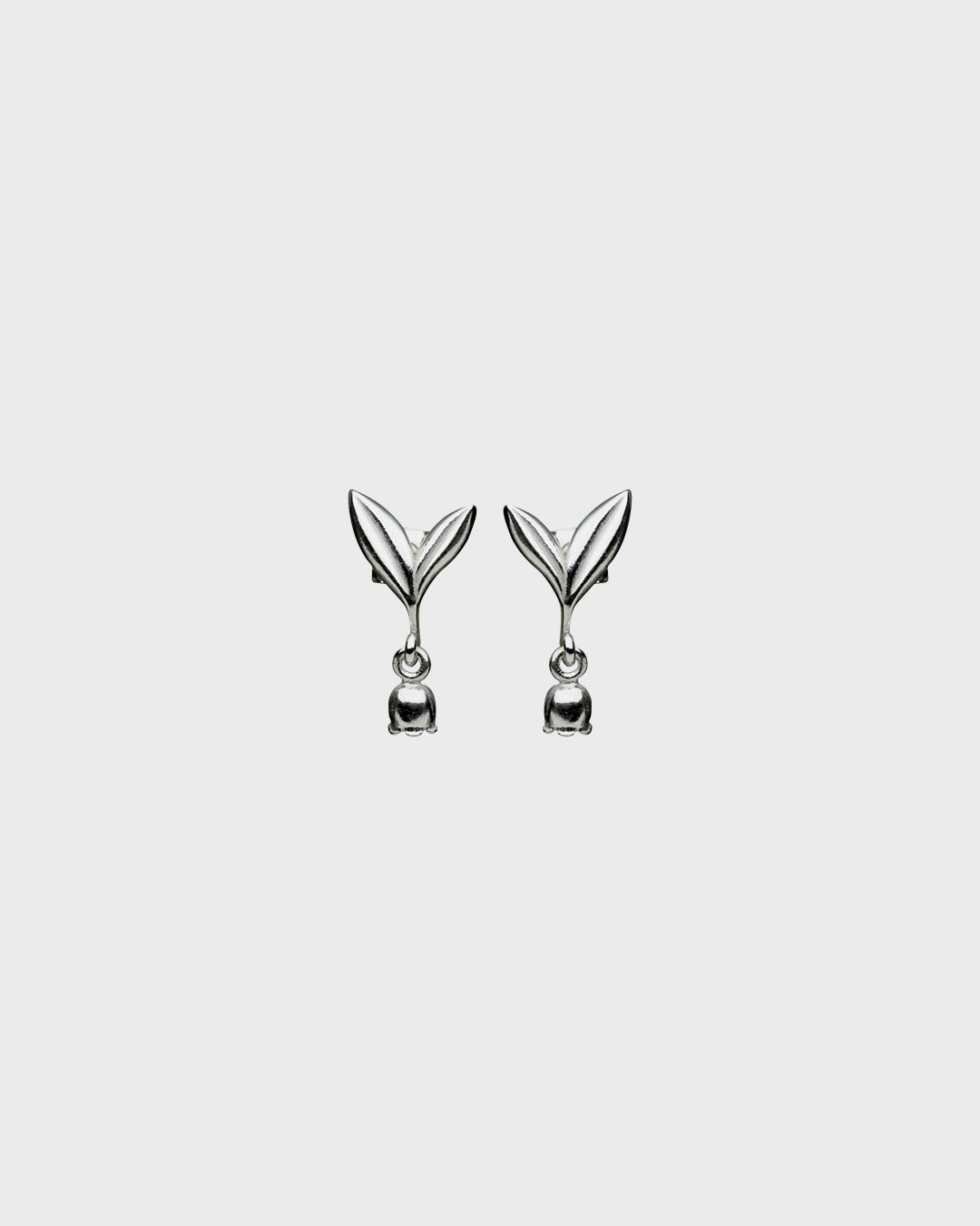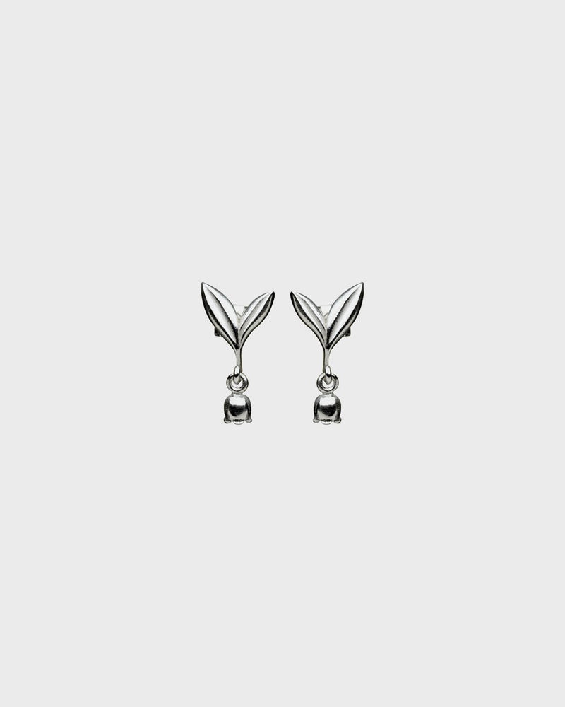 The silver Lily of the Valley earrings have a small bell-shaped flower pendant, featuring Finland’s national flower, the lily of the valley. This flower never withers but blooms throughout the year. Stud earrings. The earrings are mirror images of each other. Also available in bronze.
