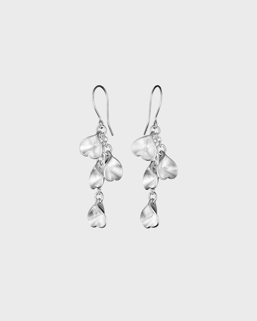 The Made in Helsinki Eira earrings, made of bright silver, have sweet little hearts dangling from them - their message is ancient and understood by everyone. Delight yourself or give as a gift to someone close to you. Silver open hooks. Also available in bronze.