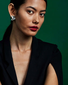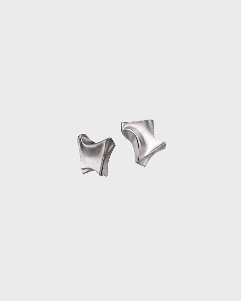 An intriguing dialogue of bright and matte silver. Earrings for the friends of sculpturesque jewelry inspired by the beauty of northern nature. The earrings are mirror images of each other. Stud earrings.