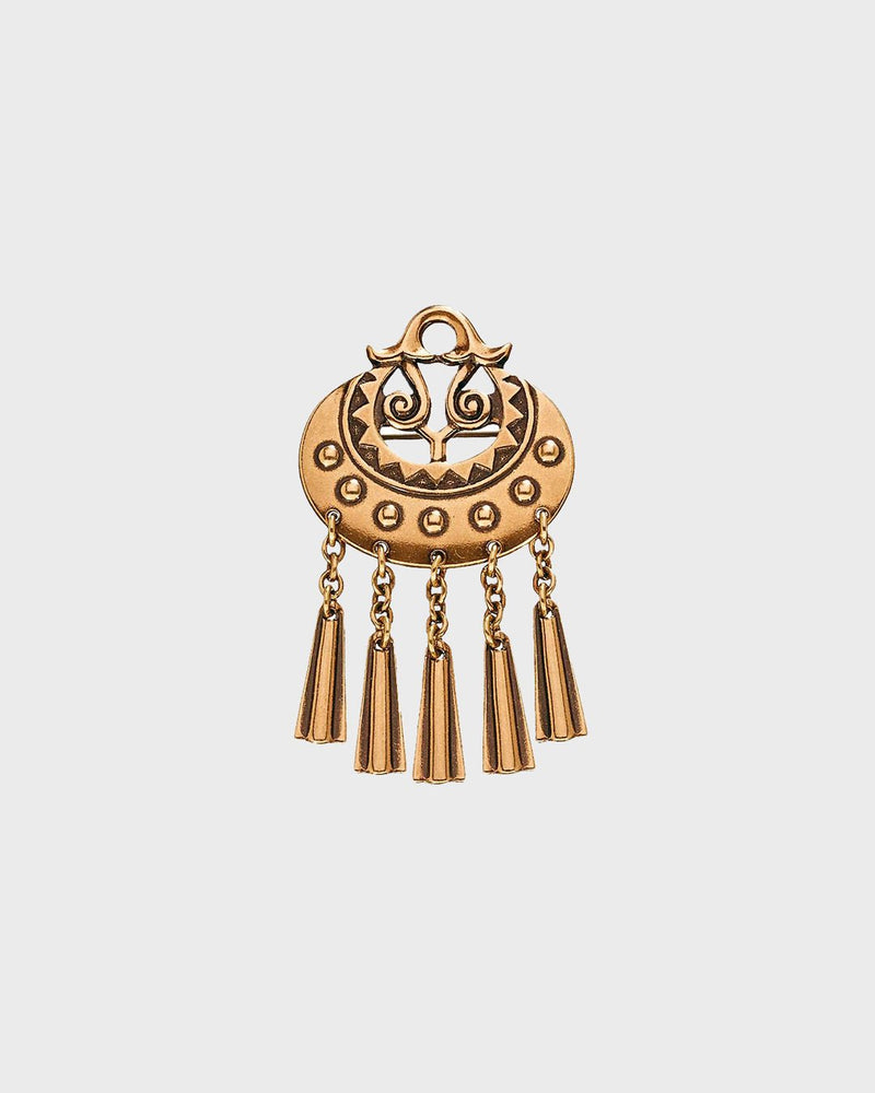 Moon Goddess Brooch was designed by Germund Paaer in the 1940s and is one of our most iconic pieces of jewelry. The viking-inspired spirals of the bronze brooch symbolize the cycle of life, and the small bells drive away evil spirits with their jingle.