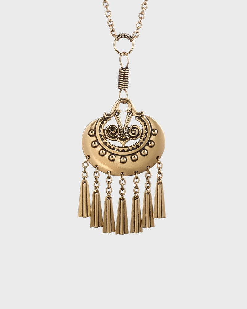 The Moon Goddess designed by Germund Paaer in the 1940's is probably the most iconic among the Kalevala Originals. The spiral motifs on this bronze pendant symbolize the circle of life, and the little tinkling charms cast out evil spirits. Chain length 70 cm, no clasp. Also available in silver.