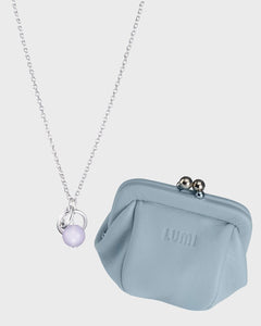 A lovely spring gift set for girls and young women! Inside the pastel-colored Lumi leather purse is a small silver pendant, the delicate tone of the quartz ball adorning it matches the color of the purse. The necklace has an adjustable length of 45/42 cm. Limited availability.