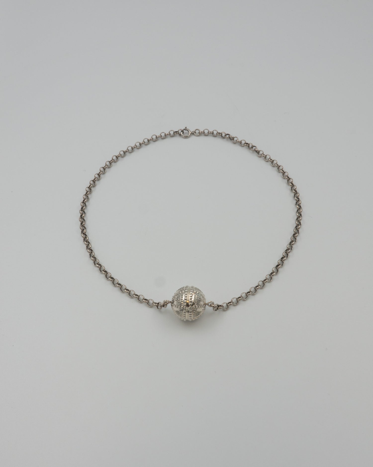 Bean chain, spring ring lock. The length of the necklace is 42 cm, the diameter of the silver ball is 19 mm.