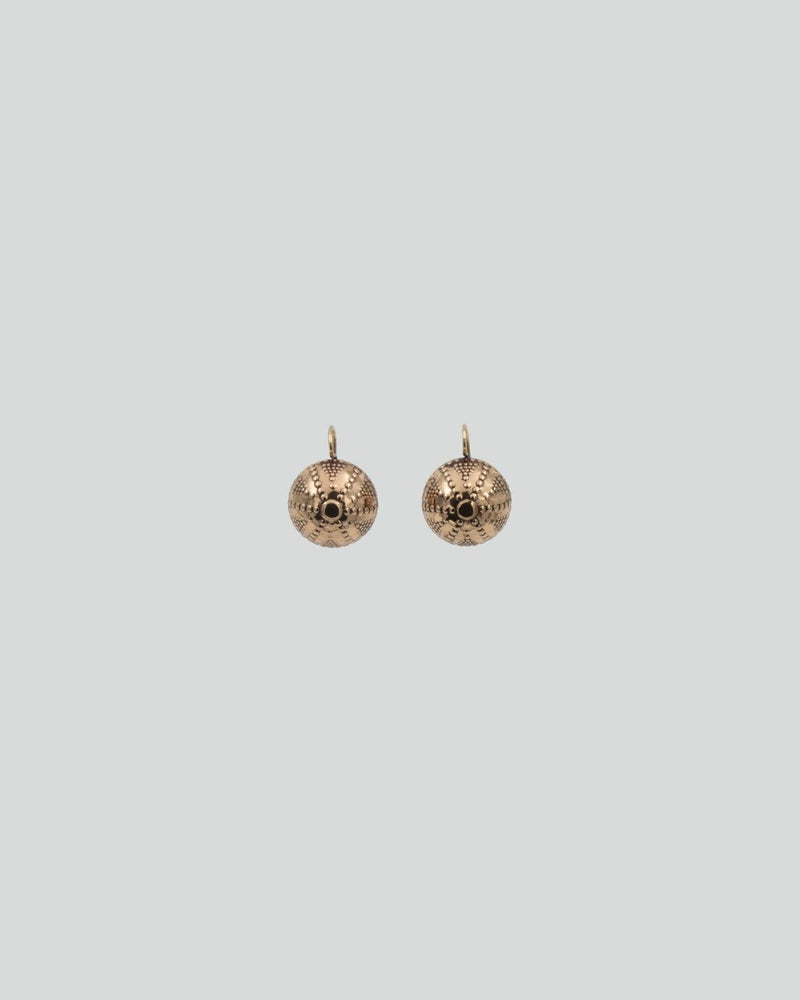 The prototype of Haliko's ball jewelry has been a necklace made of skillfully decorated silver beads, which was part of an early medieval silver treasure found in 1887 in Joensuu, Haliko. The hollow hemispheres are grounded. Hooks gilded silver.