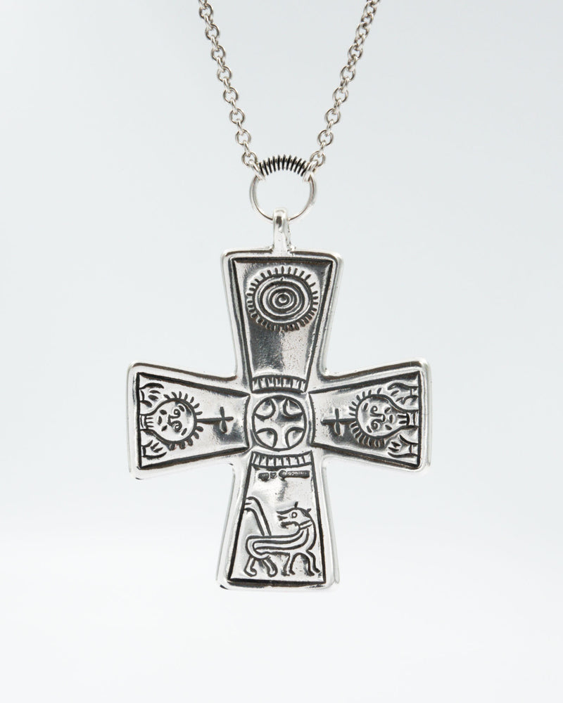 Kaksipuolisen ristiriipuksen esikuvana on ollut varhaiskeskiaikaiseen Halikon hopea-aarteeseen kuulunut kookas hopearisti. Ankkuriketju 70 cm, ei lukkoa. Korkeus riipuslenkkeineen 80 mm, leveys 55 mm.
