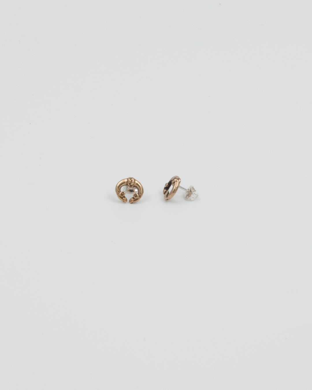 The source of inspiration for these small bronze earrings depicting to elk heads was a four thousand years old elk head figure, skillfully carved from soapstone. The Elk collection was designed by Tony Granholm in 1999 in anticipation of the new millennium. Width 10 mm. Stud fastening, silver stud and back.