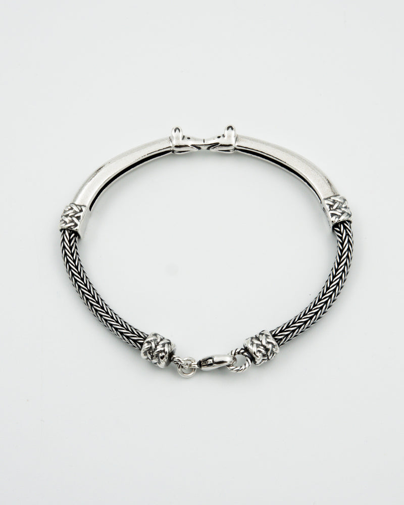 Hirvenpää jewelry designed by Tony Granholm celebrated the beginning of the new millennium. The model of the jewelry has been a moose's head found in Säkkijärvi, which was found in stone by skillfully carving and grinding, and which is dated to the Neolithic Stone Age. The inner diameter of the bracelet at the widest point is approx. 60 mm. Parrot lock.