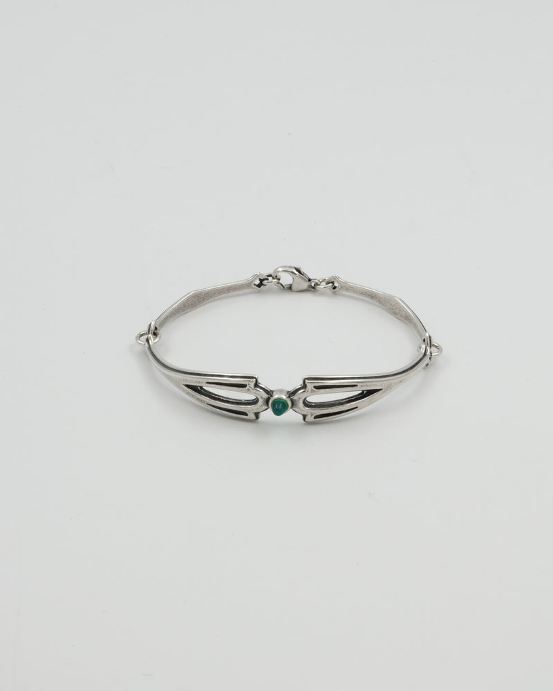 The Jugendhenkisen Illusioni jewelry series was designed by goldsmith Tony Granholm at the turn of the millennium. Tony combined the silver Illusioni jewelry with a translucent green agate stone.