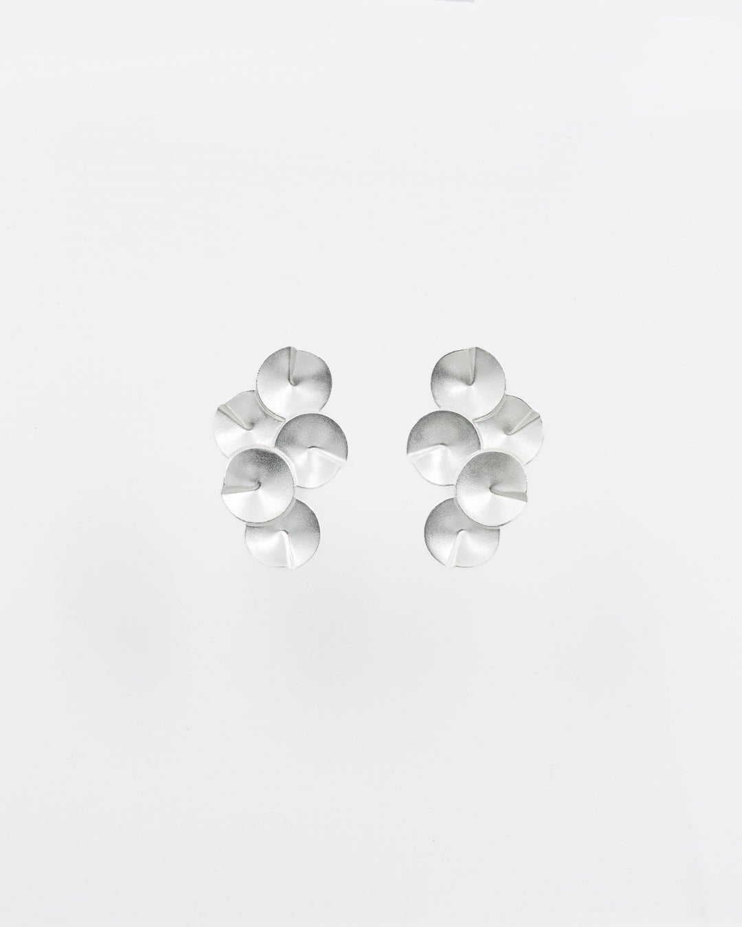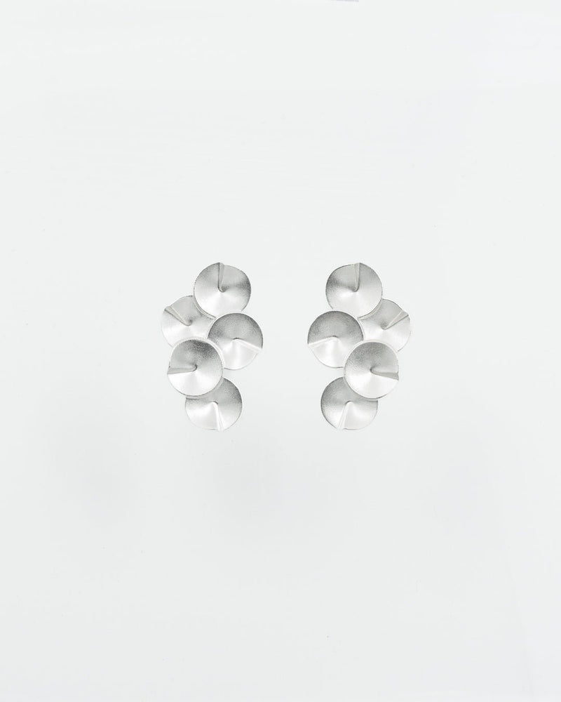 Earrings like miniature sculptures. The silver elements that connect to each other in a conical shape and the dull glow of the matte surface make Kaikuja earrings real eye-catchers that will not go unnoticed by anyone. Pin fastening.