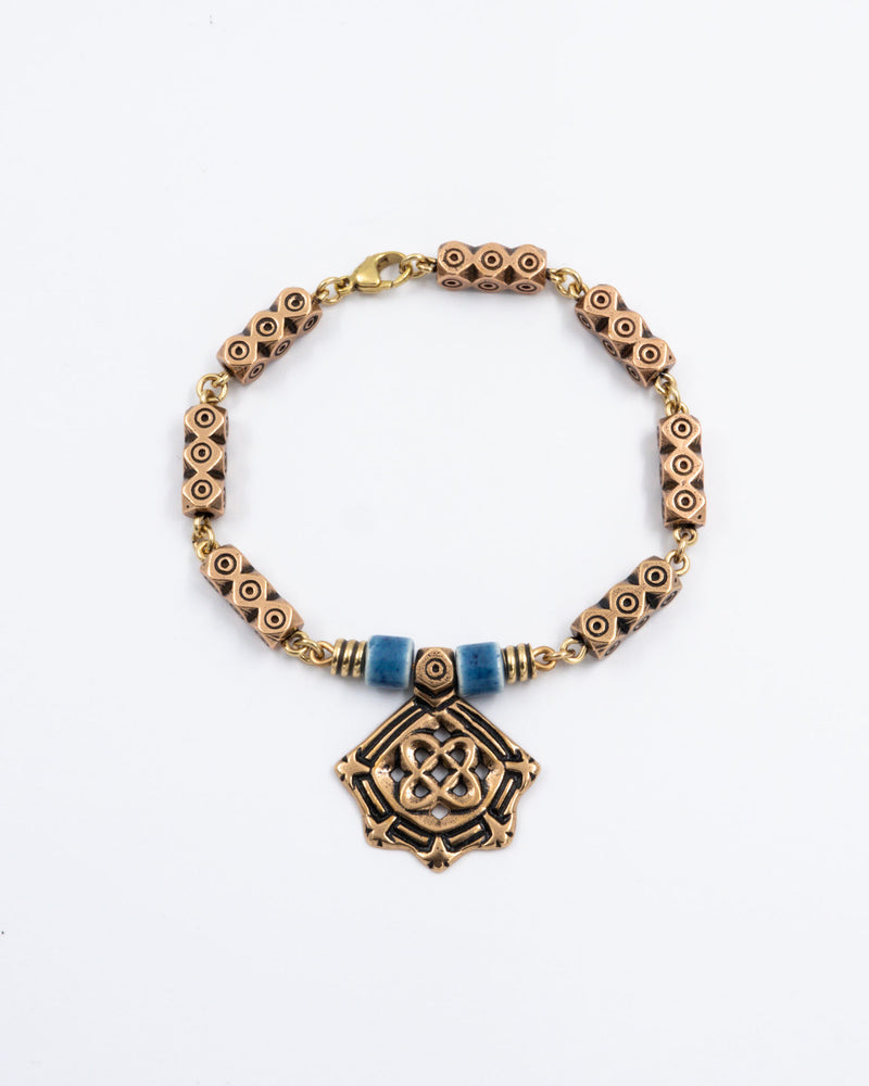 Pidetty Kanteletar-rannekoru pronssi keramiikka vaaleansininen 20,5 cm