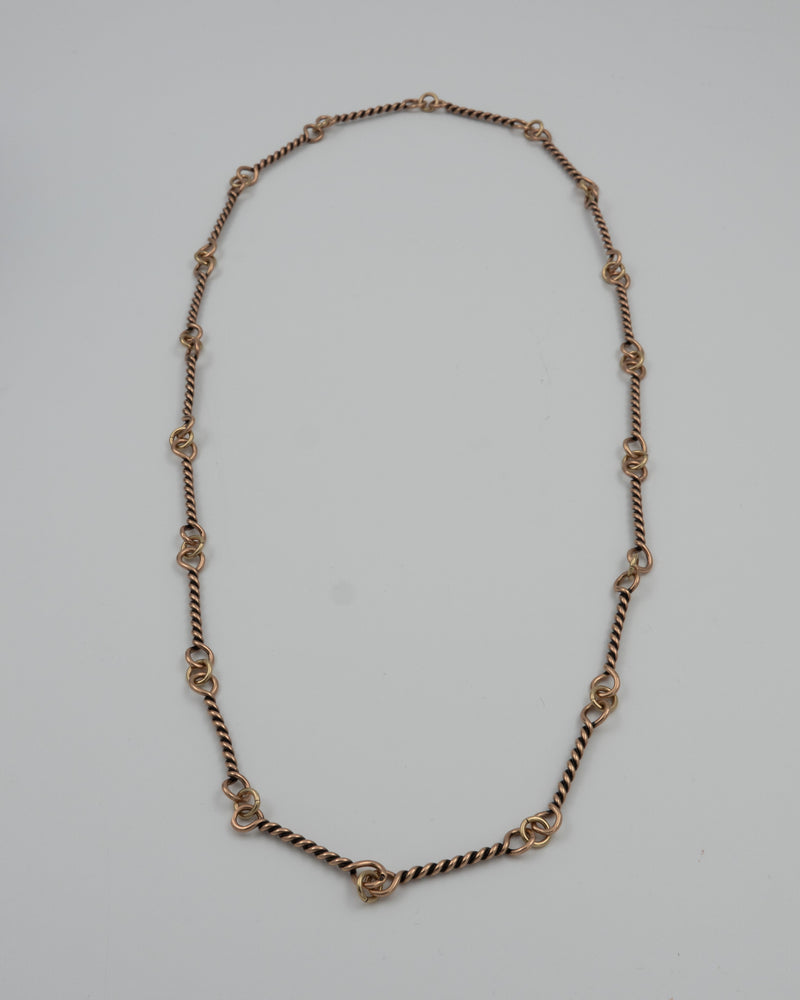 The Luistari chain is part of the Luistari collection, which was announced on Kalevala Day 1996. The models of the collection's jewelry were found at Luistari in Eura, which is one of Finland's most significant archaeological sites. Part of the proceeds from the sale of Luistari jewelry was donated to scientific research in the Luistari area and to make it known. The manufacture of Luistari jewelry was stopped at the turn of the millennium. The length of the bronze chain is about 70 cm, no clasp. The length of one "stick" is 36 mm.