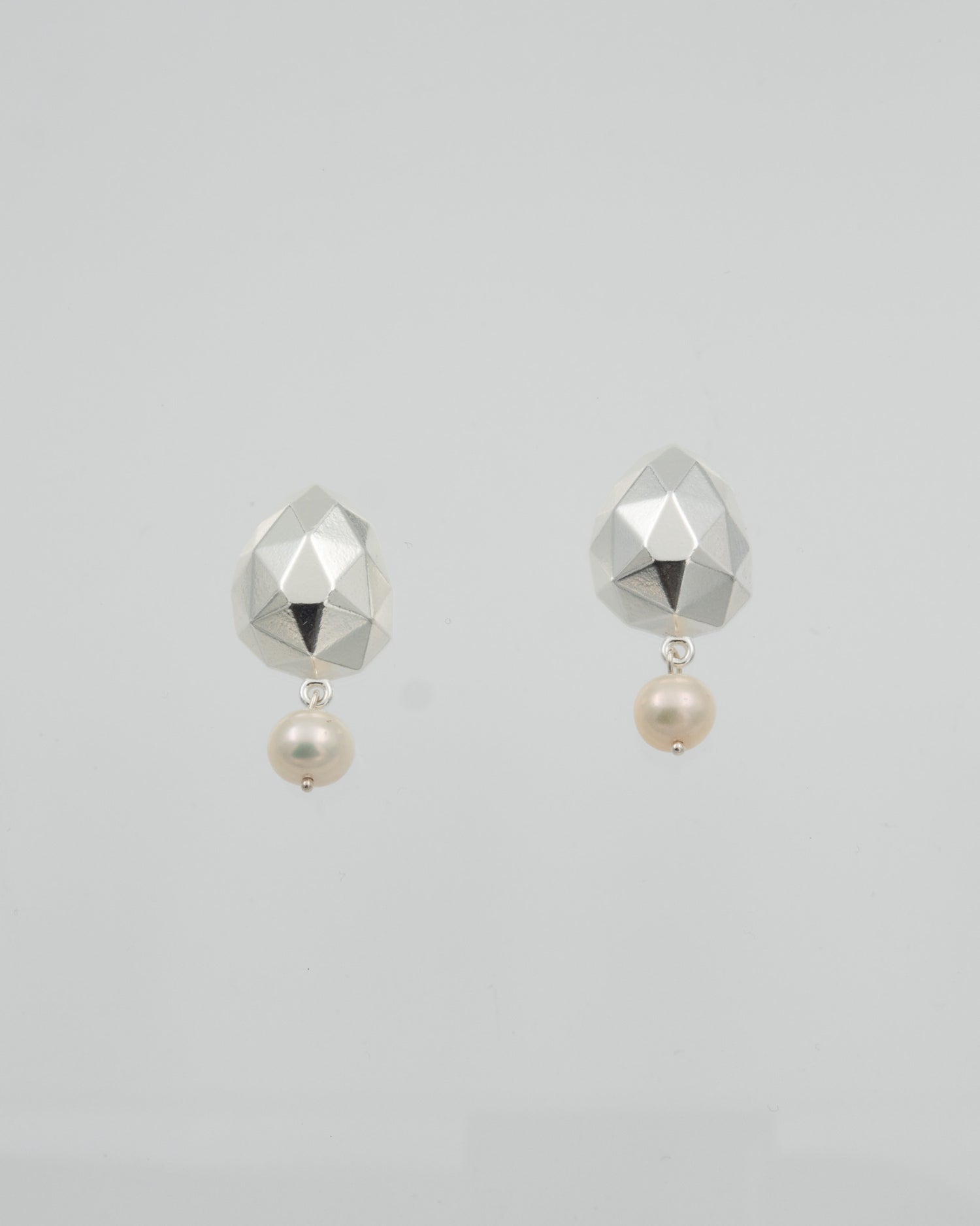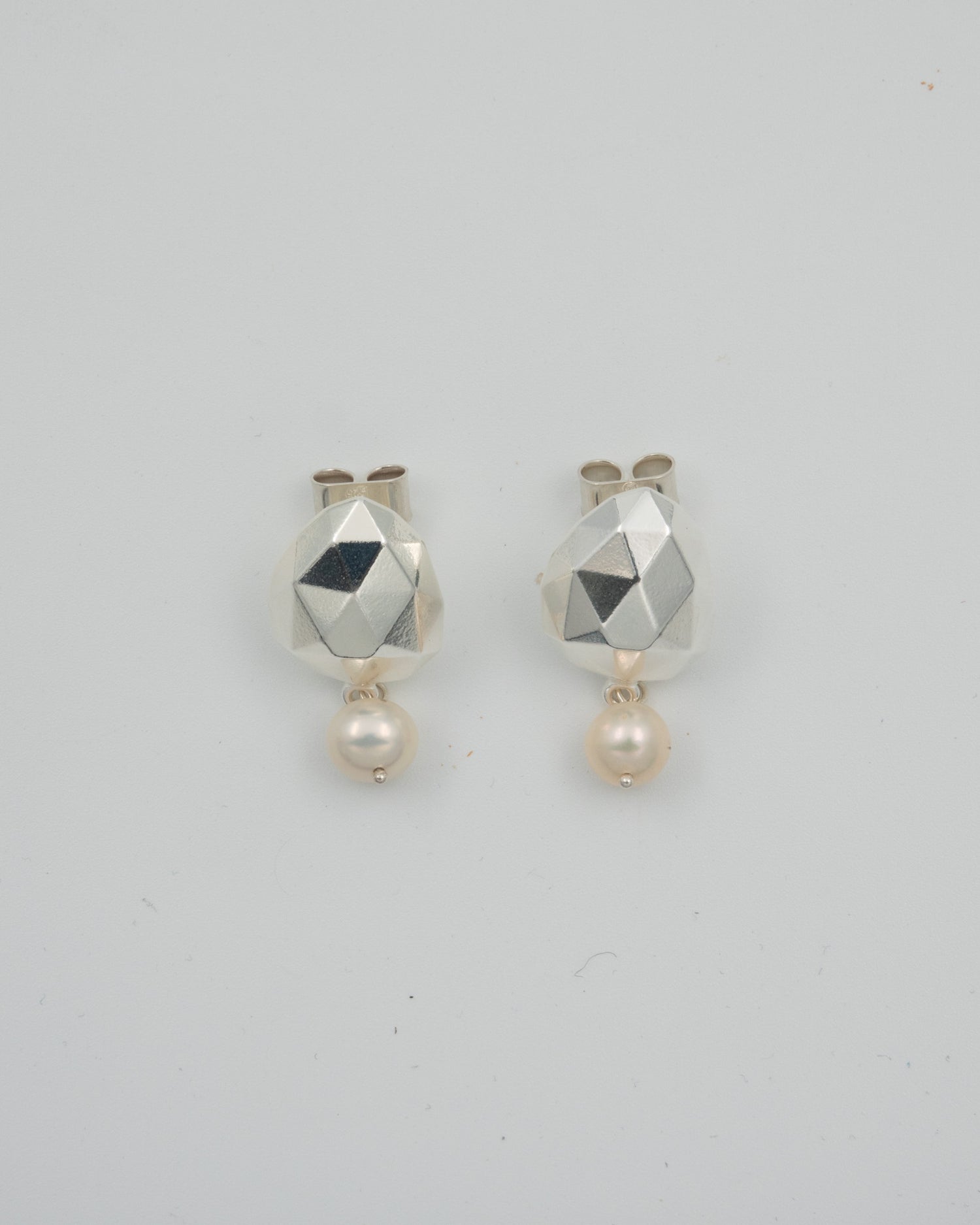 The Maman Aurore jewelry series designed by Kirsti Doukas is inspired by the jewelry that belonged to Aurora Karamzin (1808-1902). The shape of the silver part of the earrings refers to the more than 55-carat Sancy diamond that Aurora received as a gift in 1836. The white pearl, on the other hand, refers to Aurora's famous pearl necklace, the Demidov pearls. Stud fastening in earrings.