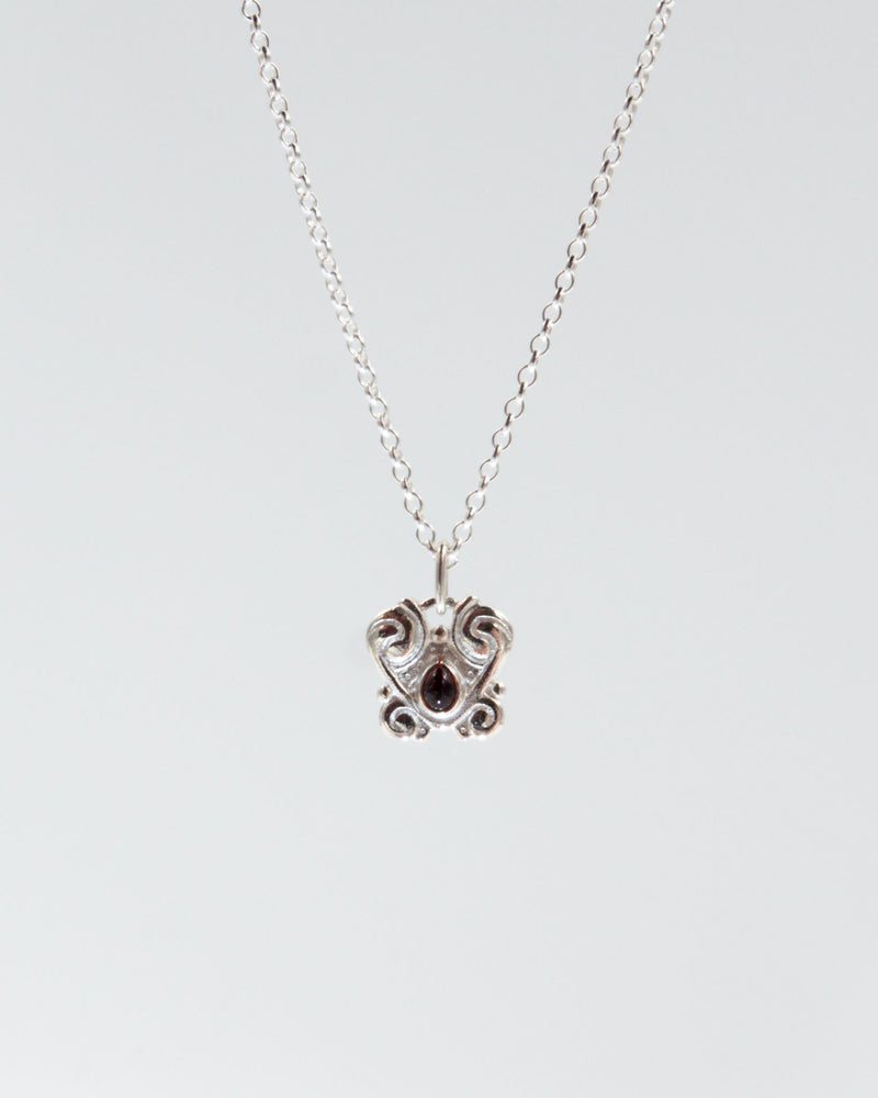 Pidetty Perhosen sydän -riipus hopea granaatti