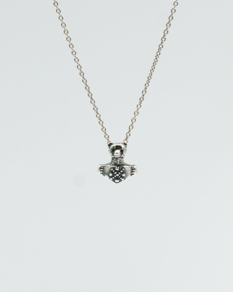 Kaisaleena Mäkelän suunnitteleman Pikku karhu -riipuksen muoto on saanut innoituksensa skandinaavisista Torin vasara -koruista. Riipuksen leveys ja korkeus 15 mm. Ankkuriketju 42 cm, jousirengaslukko.