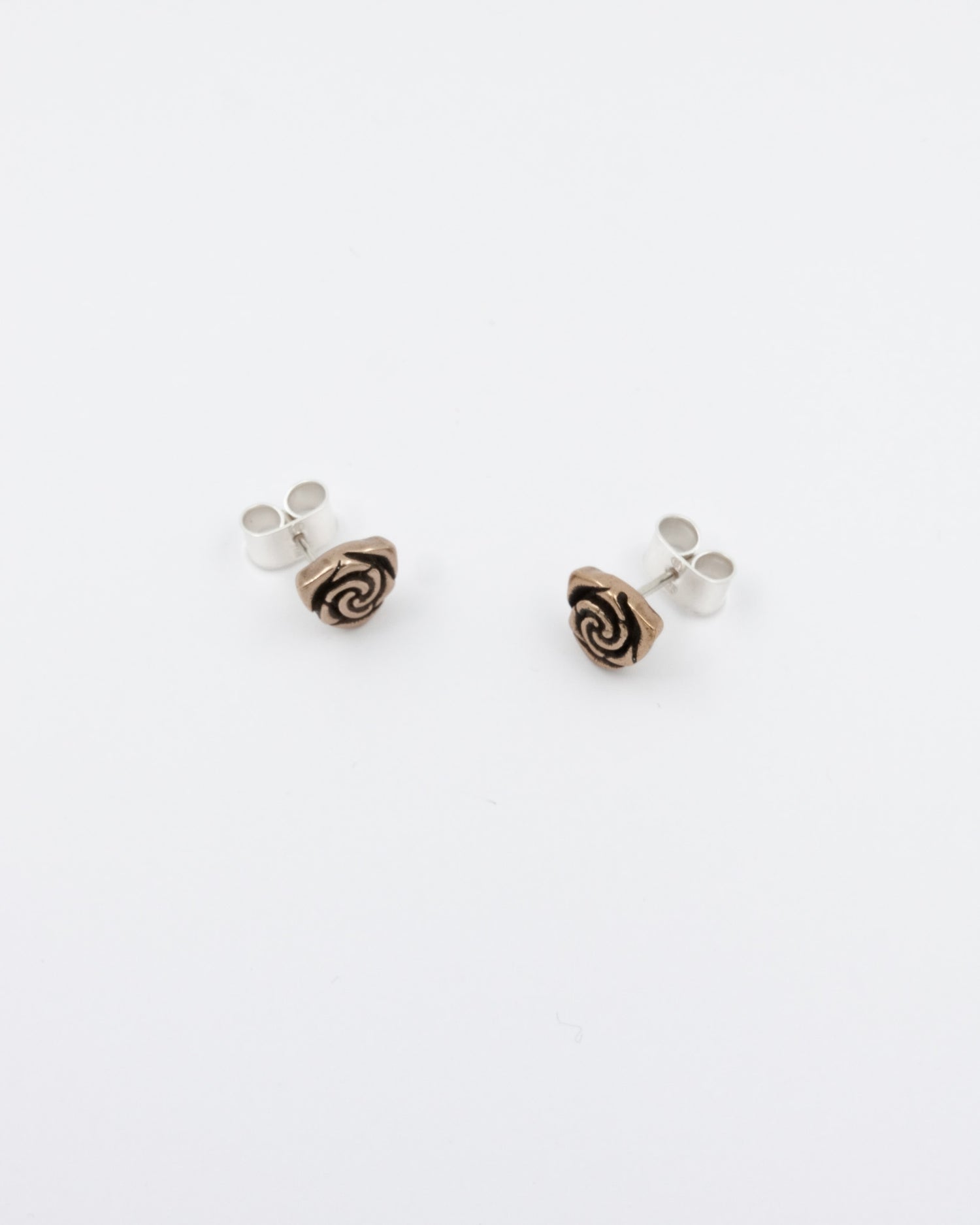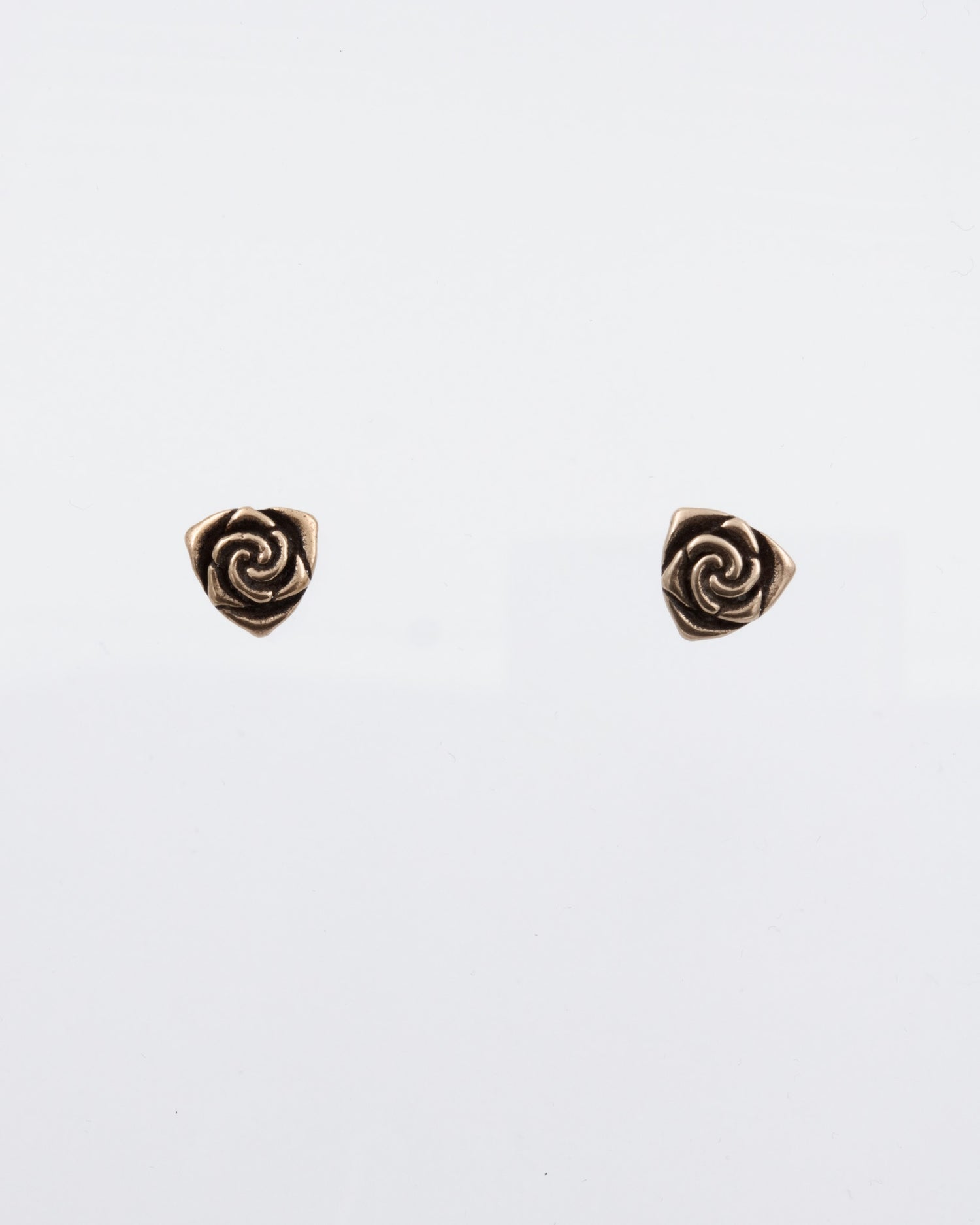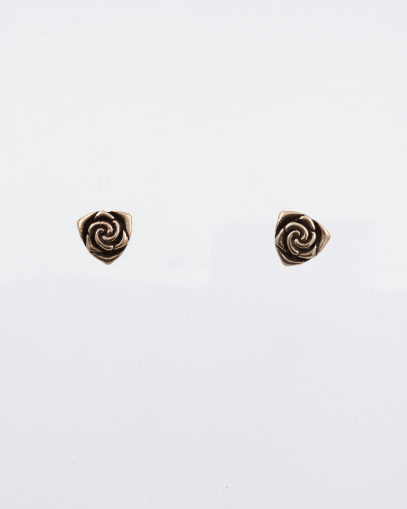 Ruusu-korut suunnitteli kultaseppä Tony Granholm 2000-luvun alussa. Korvakorun leveys 9 mm. Tappikiinnitys, tappi ja taustanasta hopeaa.