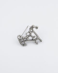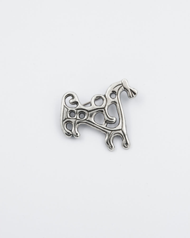 Muinaisille suomalaisille hevonen oli valon ja menestyksen tuoja. Hevosaiheisia muinaiskoruja on löydetty Suomesta useita. Tämän korun esikuva on Suomussalmen Juntusrannasta. Leveys 33 mm.