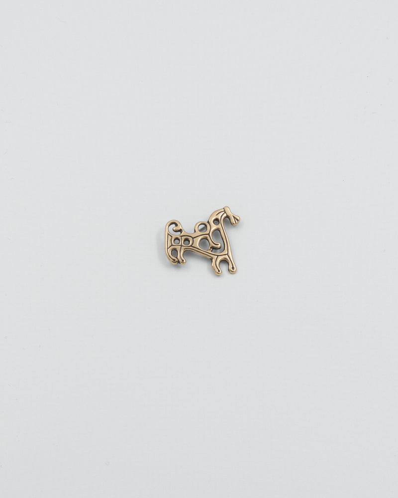 Muinaisille suomalaisille hevonen oli valon ja menestyksen tuoja. Hevosaiheisia muinaiskoruja on löydetty Suomesta useita. Tämän korun esikuva on Suomussalmen Juntusrannasta. Leveys 33 mm.