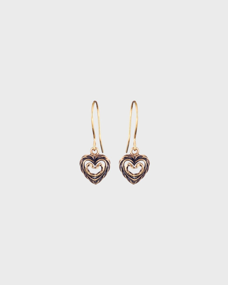 The message of the heart is eternal and universally understood. The Heart of the House, designed by Tony Granholm in the early 2000s, draws its inspiration from the rich ornaments and timeless beauty of ancient Finnish jewelry. Width 11 mm. Gold-plated silver hooks.