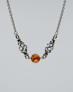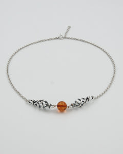 A round amber pearl shines in the Fire spirit necklace designed by goldsmith Tony Granholm. Anchor chain, adjustable length 42/45 cm. Spring ring lock. The diameter of the amber bead is 10 mm.