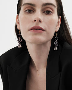 The Pretzel plywood earrings are a limited edition campaign product. The earrings are made of Finnish plywood with connecting parts in bronze and hooks in gold-plated silver. Dyed on both sides, the reverse side unpatterned.