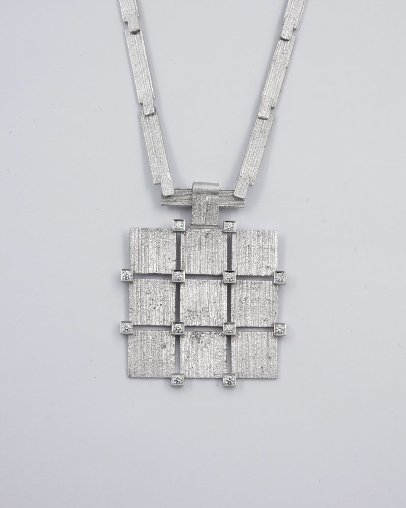 The dazzling white gold necklace designed by Björn Weckström in 2010 is adorned with 12 sparkling 0,02 ct diamonds set in platinum.